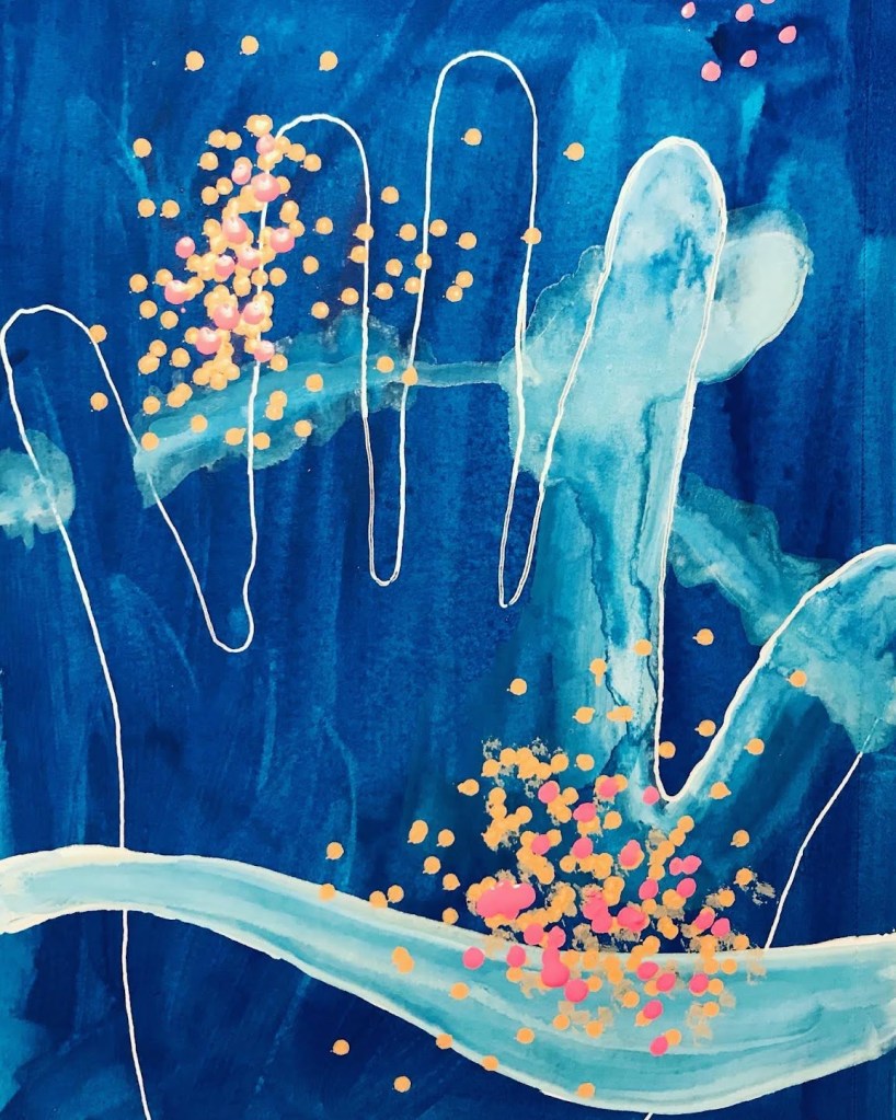 Creating these paintings is an act of self-love, therapy, and prayer. The process of painting allows me to find rest in the present. Sharing the work puts my brain on display, adds to the visual language of mental illness, and opens up the greater conversation about the effects of trauma in the brain’s landscape.