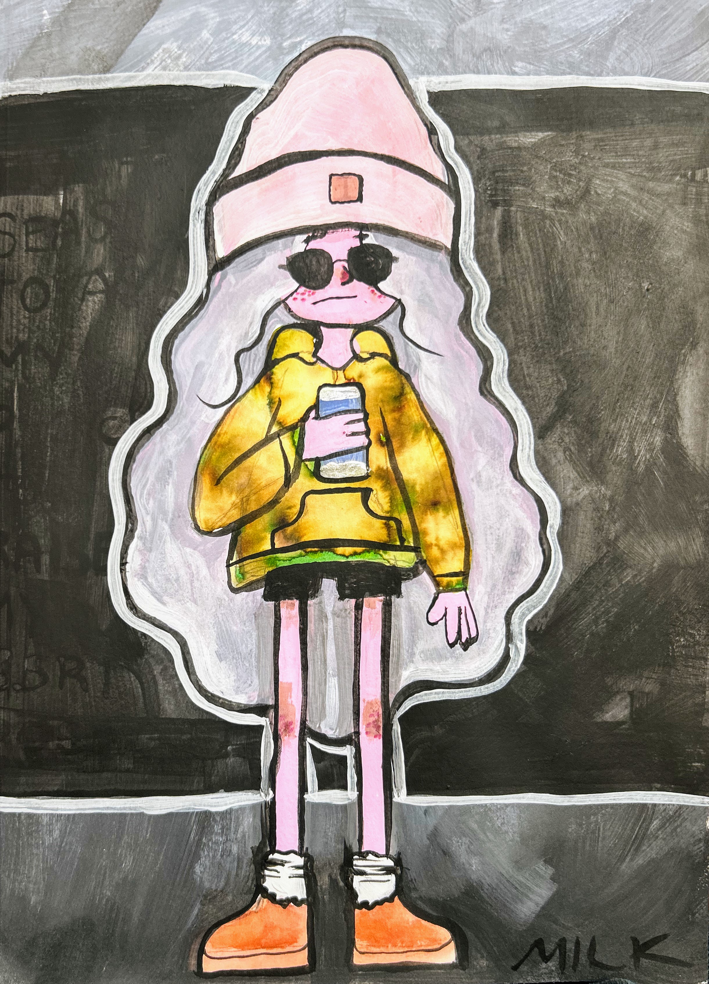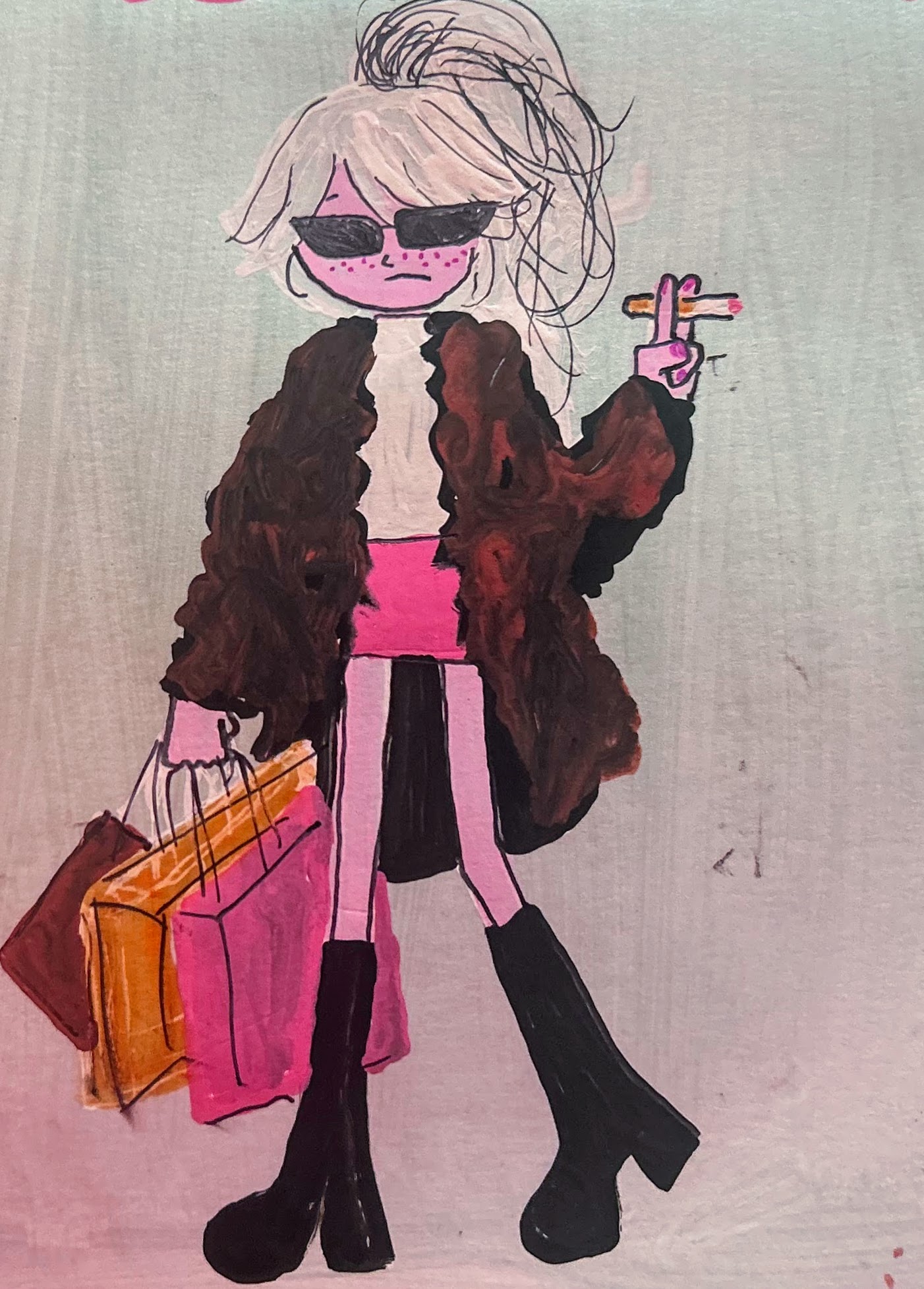 I have a box of sketchbooks dating back to my middle school years in my parents’ basement. While the content of my artwork has shifted far away from doodles of boy bands and homeroom crushes, a constant character within the pages has been frequently featured in a variety of media. My little self-portrait girl, with her long blonde hair and soft smile, finds herself on adventures or wearing outfits I can only dream of.